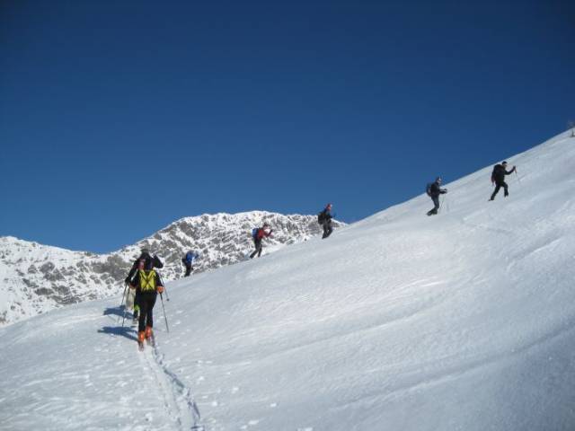 Primo tratto sul percorso classico del "Forcellino" sino alle baite di Calar - troviamo neve ghiacciata. Dalle baite di Calar passando ai piedi della parete di arrampicata e su percorso in neve fresca con una vista che si apre con una vista stupenda su tutta la Valfurva, Bormio Valdidentro e Valdisottoa giungiamo alla vetta. La vista è fantastica. In primo piano ci circondano tutte le cime della Valfurva, dal Cristallo al Sobretta. La discesa diventa una "cavalcata" in neve fresca di oltre 30 cm. interrotta da brevi tratti - i più esposti a SE - di neve compatta. Davvero fantastico.
