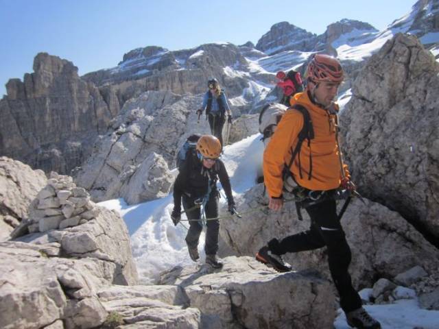 Rifugi Brentei e Alimonta, in un paesaggio strepitoso. Altri si sono incamminati verso la via ferrata: il famoso sentiero attrezzato SOSAT ( Sezione Operaia Società