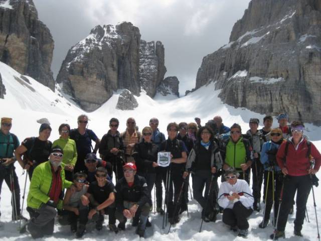 Dopo le numerose e sempre belle escursioni invernali di sci alpinismo,eccoci di nuovo scendere in campo.Questa volta in versione estiva, in trentasette, abbiamo raggiunto le Dolomiti del Brenta.