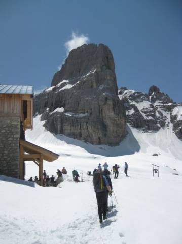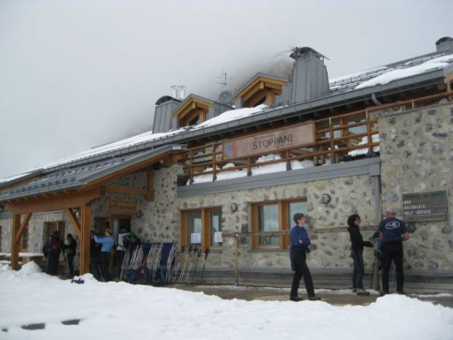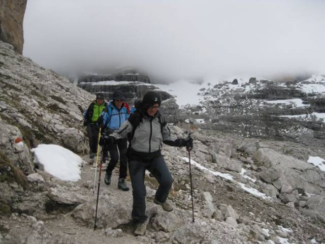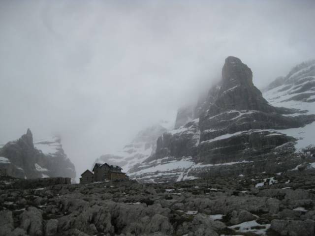 Dopo circa due ore di salita a piedi, siamo arrivati al Rifugio Tuckett e qui ci siamo ristorati. Al pomeriggio anche se il cielo era nascosto dalle nuvole e minacciava