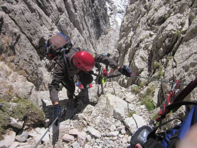 ancoraggi fissi come scalette, in modo che gli itinerari sui pendii rocciosi siano alla portata anche di scalatori meno esperti. Consente anche ai non alpinisti