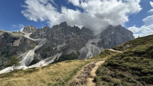 Con le auto raggiungiamo il Passo Rolle e con un meteo un po' incerto facciamo la prima escursione