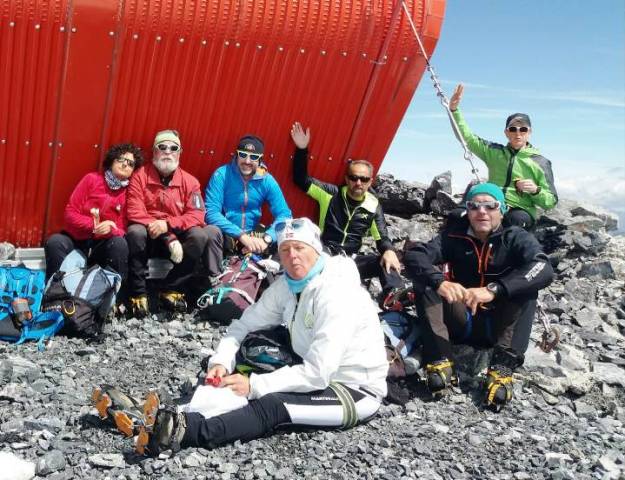 Bivacco Citta di Cantu' da li' un piccolo gruppo sale al Piccolo Zebru'. Poi la discesa dalla via di