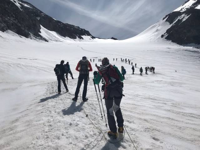 il ghiacciaio e alle 8 il gruppo parte per salire il ghiacciaio dello Zebru'. Raggiunto il colle