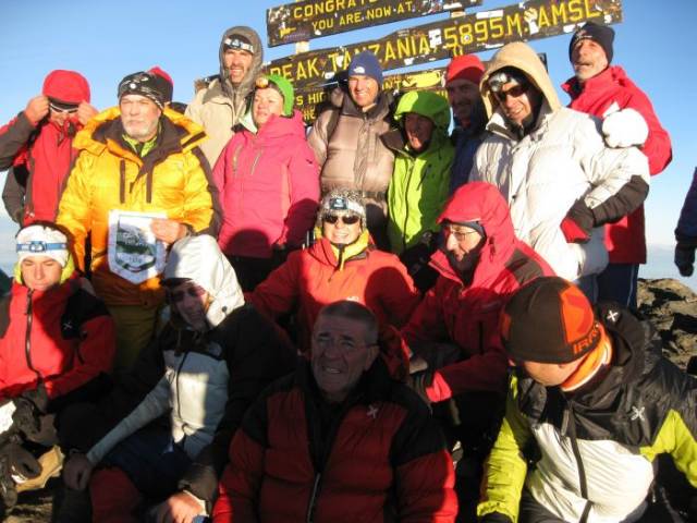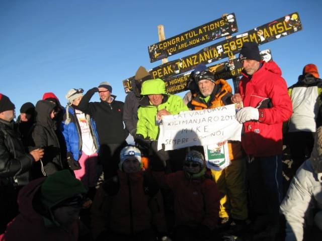 Il gruppo sulla cima del KilimangiaroÈ rientrata ieri dal Kenia e dalla Tanzania la spedizione del Cai Valfurva che il 30 settembre, con un gruppo composto da 17 persone, ha risalito la montagna più alta dell'Africa, il Kilimangiaro (5895 metri).