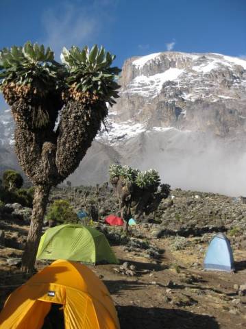 Una bellissima esperienza in una giornata fantastica con la cima vista al sorgere del sole, dopo cinque giorni di salita dai 1600 metri di gate point Umbwe, attraverso campo Barraneo (3950 metri), a campo Karanga (4100 metri) e il 4° campo prima della giornata della salita alla cima, campo Barafù (4730 metri)