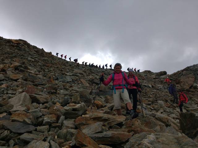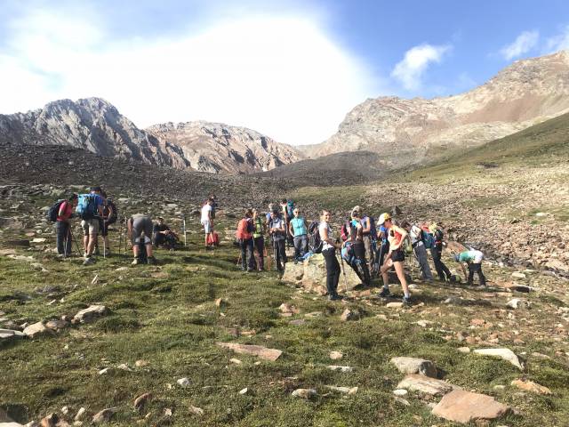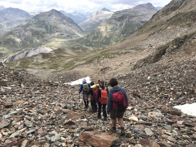 gruppo numeroso e con la meteo che ci aiuta. La discesa nella Val Orsera prima su sfasciumi poi