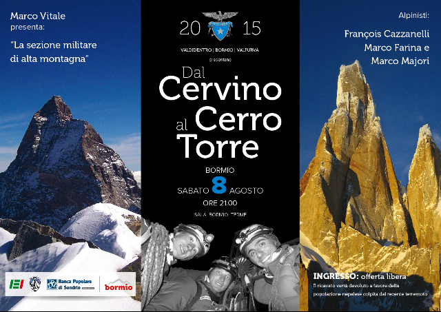 Marco Majori, Marco Farina e François Cazzanelli, alpinisti e guide alpine, appassionati di sci alpinismo, di arrampicata e di montagna ci fanno vivere l'emozione dalle ascensioni al Cervino (via "Bonatti" parete nord e via "Gogna Cerutti" naso di Z'mutt), della Spedizione Alpinistica Militare al Cerro Torre (via dei Ragni - dicembre 2014), fino alla Spedizione Alpinistica Militare dove hanno salito la parete sud dell'Illimani e aperto una nuova via di roccia e misto sull' Alpamayo Negro in Bolivia (luglio 2015).