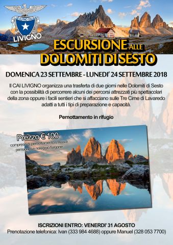 Categoria:LivignoIl CAI Livigno organizza una trasferta di due giorni alle Dolomiti di Sesto.