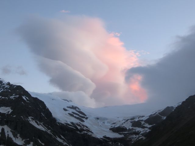 Poco sotto si vedono le rotaie del "Trenino Rosso", che percorre la famosa rotonda dell' Alp Grüm.